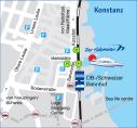 mit dem Kfz kommen Sie aus Richtung Singen oder Meersburg über die alte Rheinbrücke. Nach der 3. Ampel sind Sie am Fischmarkt mit dem markanten Konstanzer Trichterbrunnen