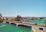 über die Rheinbrücke oder vom Hafen/Bahnhof