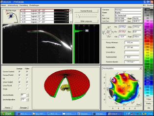 Mit der Pentacam kann nicht nur die Pachymetrie (Dicke der Horhaut) und eine Topometrie (Darstellung der Hornhautoberfläche) gemessen werden, auch ein optischer Schnitt durch das Auge (Scheimpflugkamera) ist möglich. Eine Darstellung der Oberfläche der Hornhaut dient unter anderem zur Anpassung spezieller Kontaktlinsen (Z.B. Keratoconus) ohne Topometrie und Pachymetrie lässt sich die Frage nach der Möglichkeit von refraktiven Eingriffen mit LASER wie z.B. LASIK nicht beantworten (wenn die Hornhaut zu dünn ist, geht's nicht). --> mehr dazu
