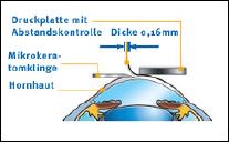 Der grundsätzliche Unterschied zwischen Femte®c und Visumax® einerseits und dem Intralase® und LDV® andererseits besteht im Applantationsprinzip. In der 1. Gruppe wird die Applanation mit einem gekrümmten Kontaktglas und in der zweiten Gruppe mit einem planen Kontaktglas durchgeführt.