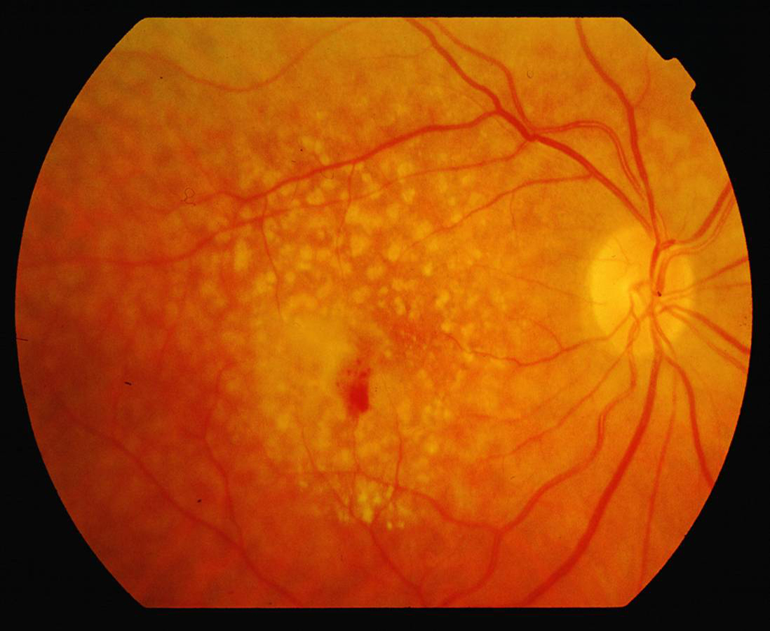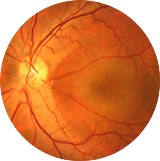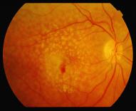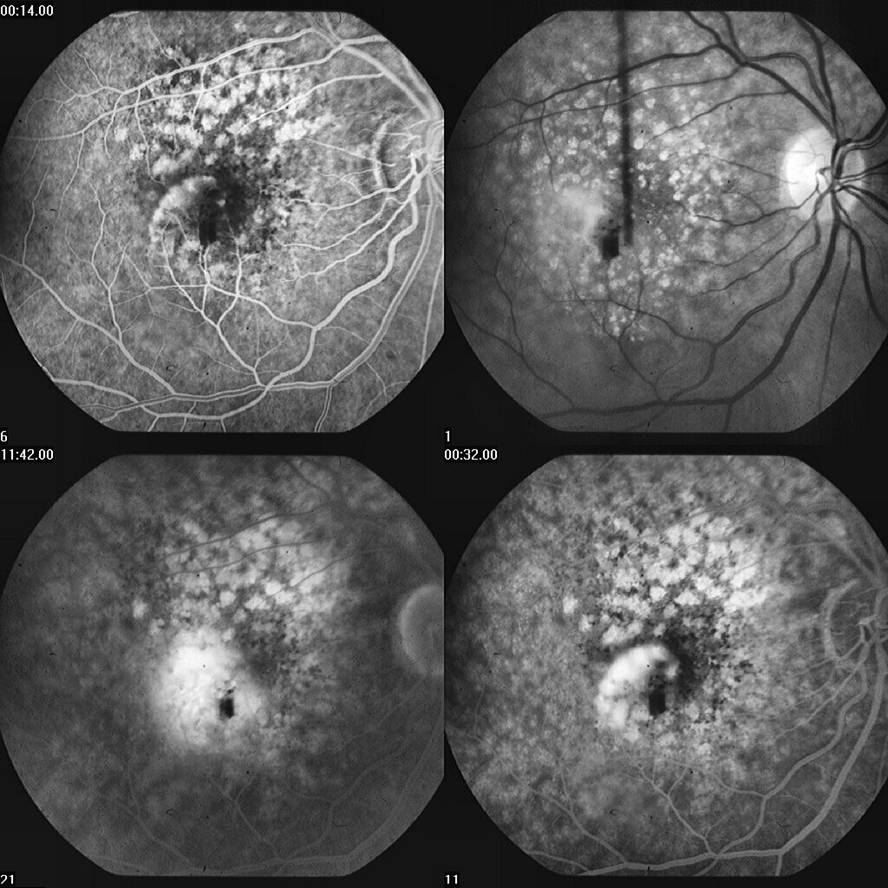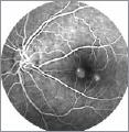 Fluoreszenzangiogramm: die krankhafte weiße Gefäss-Veränderung ist auf dem Bild oben nicht sichtbar